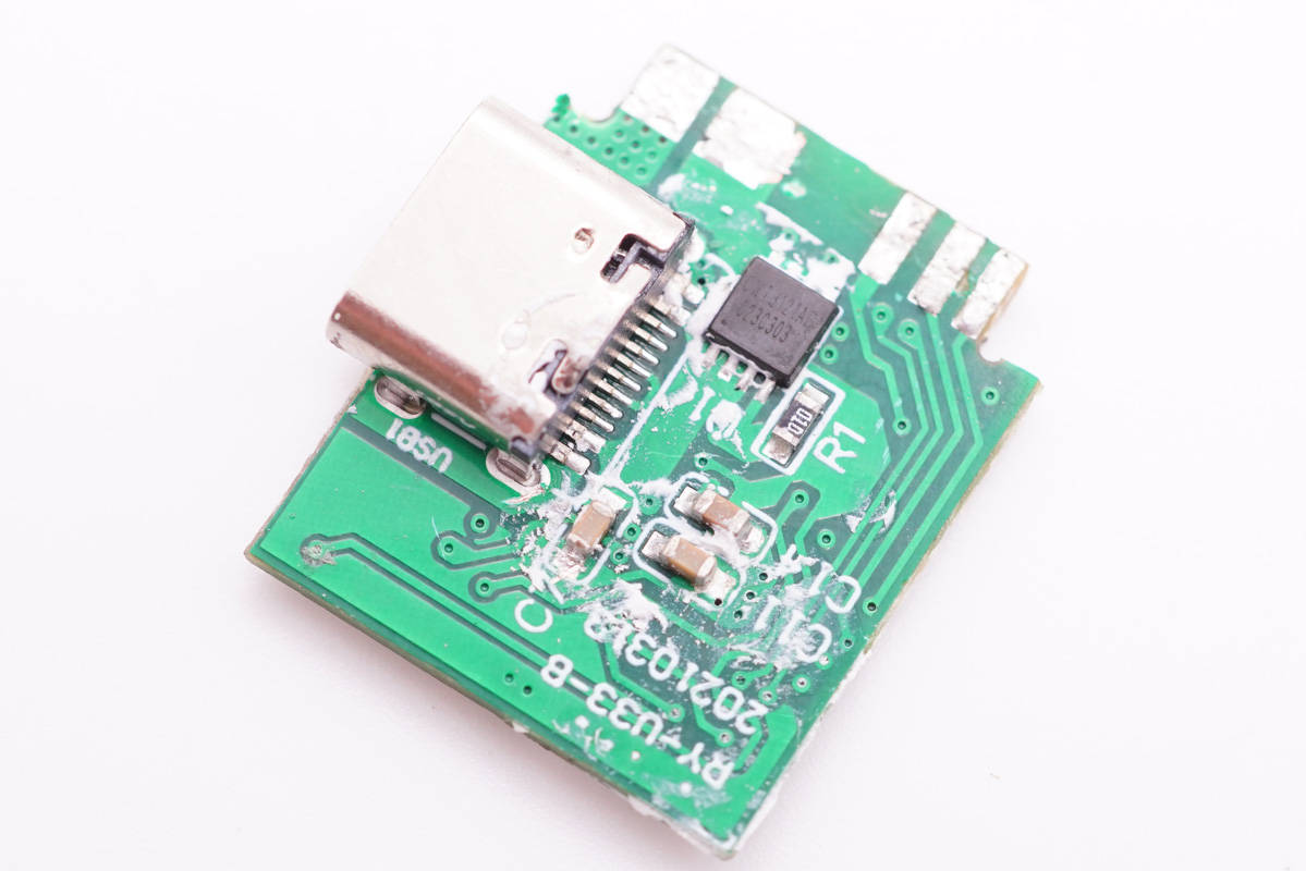 USB-C母座所在小板背面設(shè)有協(xié)議芯片。