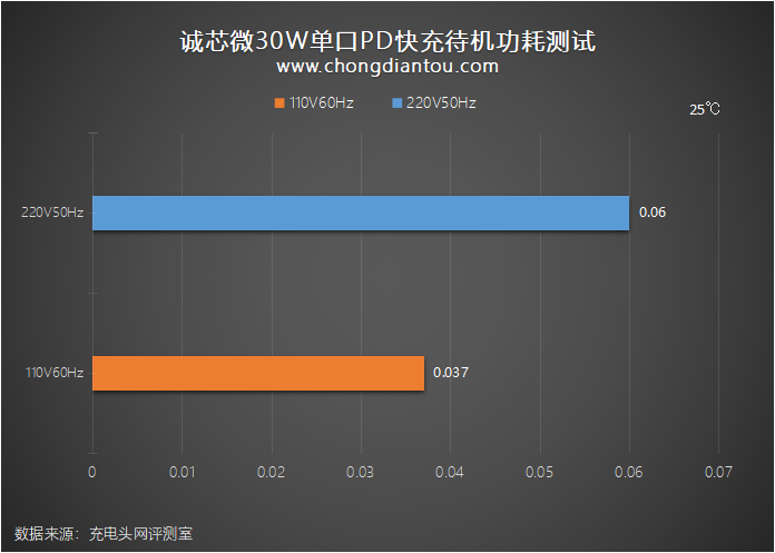 110V 60Hz時的空載功耗為0.037W,換算下來,一年損耗的電能約為0.32KW·h,若市價為0.6元/KW·h,則充電器一年的空載功耗約為0.2元左右。