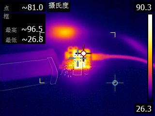 9V3A PCB變壓器側最高溫度為96.5℃。