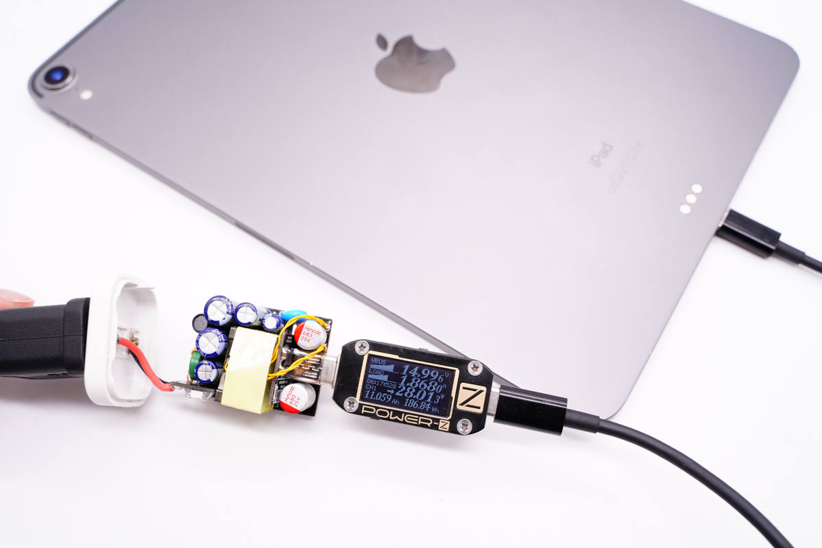 為iPad Pro 2018 11寸充電,電壓14.99V,電流1.87A,充電功率約為28W。
