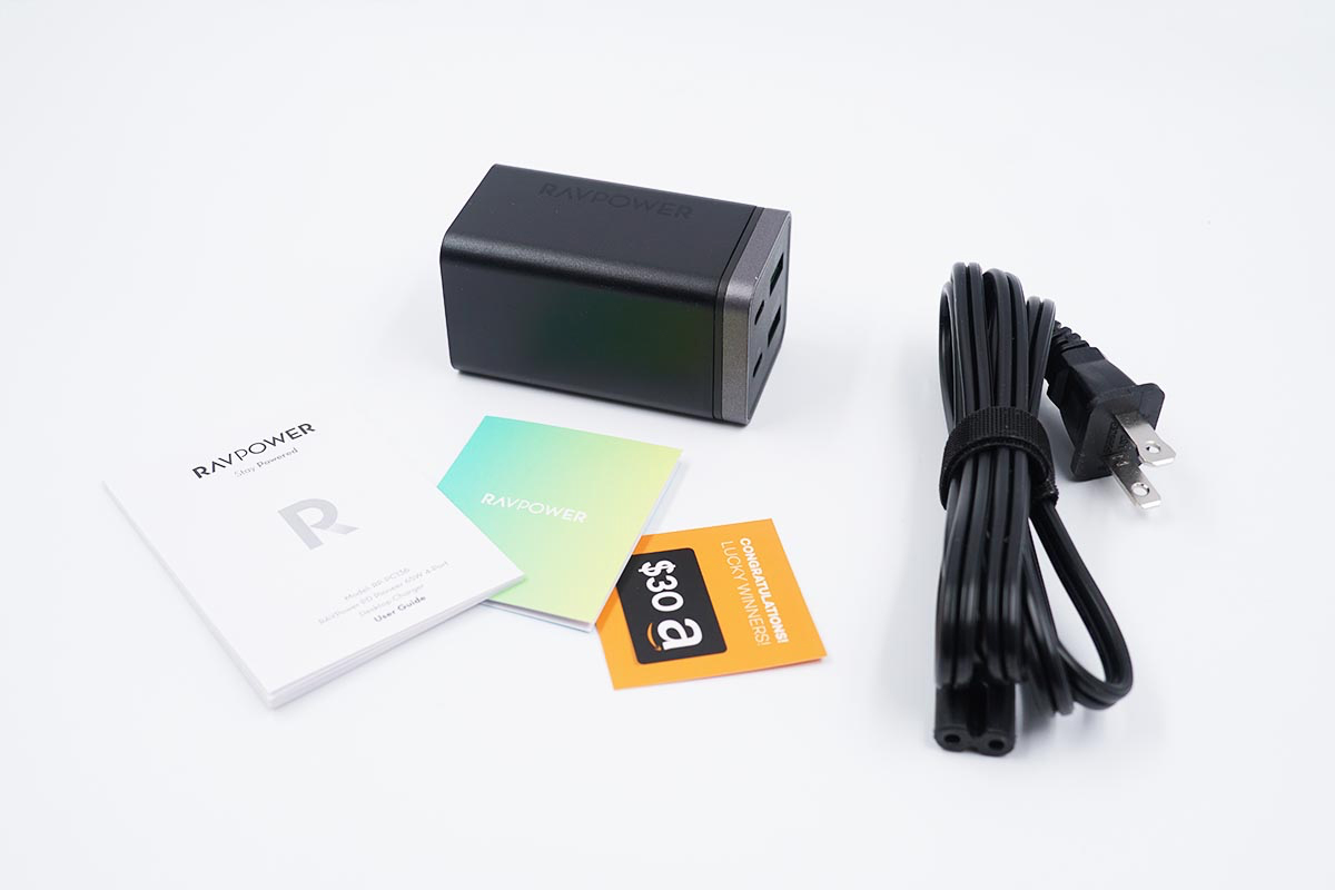 包裝內(nèi)含充電器、電源線、使用說明書和保修卡。