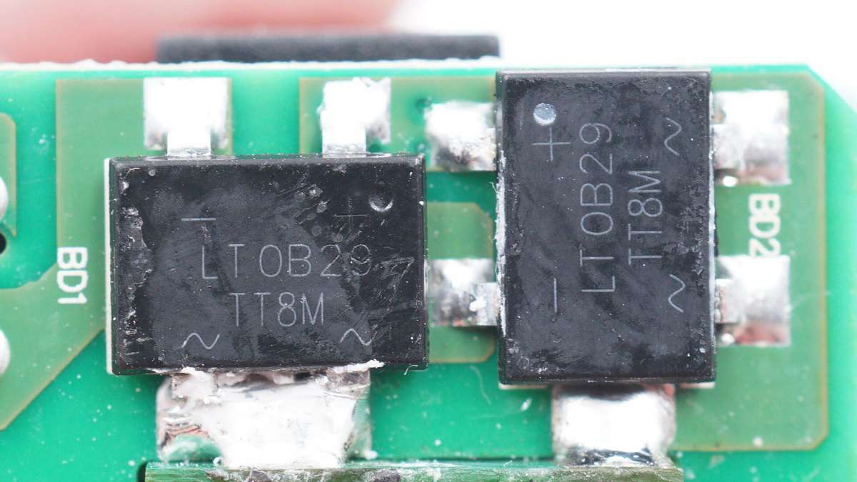 TT8M整流橋特寫,8A1000V,兩顆用于均攤發(fā)熱。