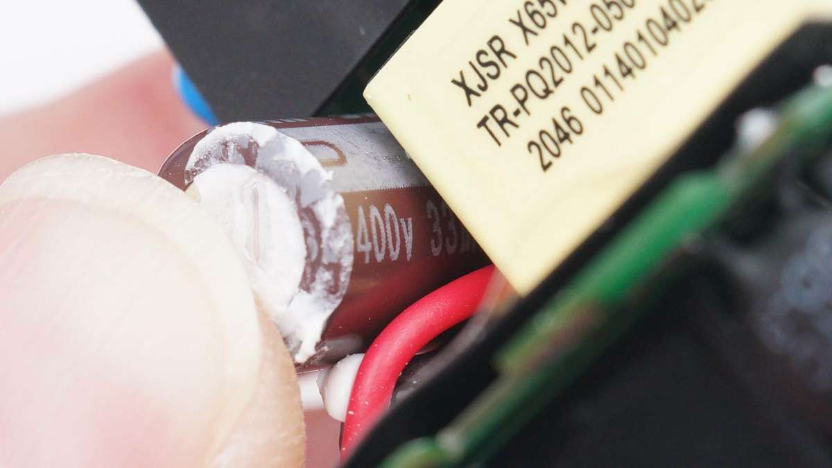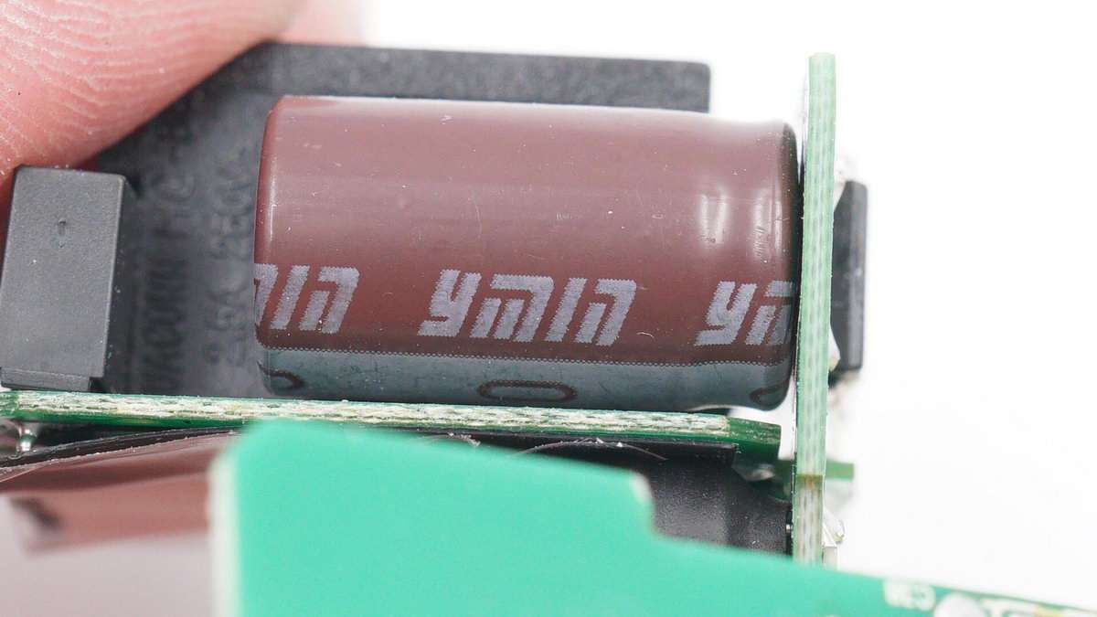 另外兩個USB-C口電路的高壓濾波電解電容也是來自永銘,規(guī)格均為400V 22μF。