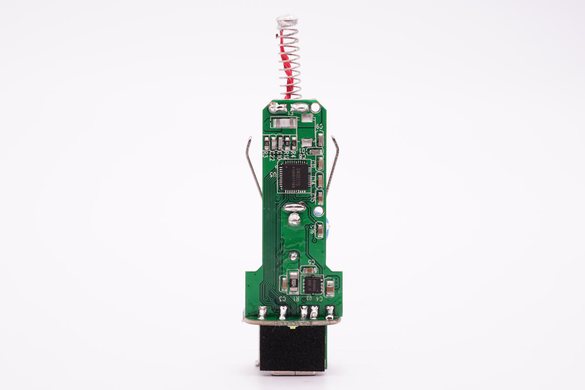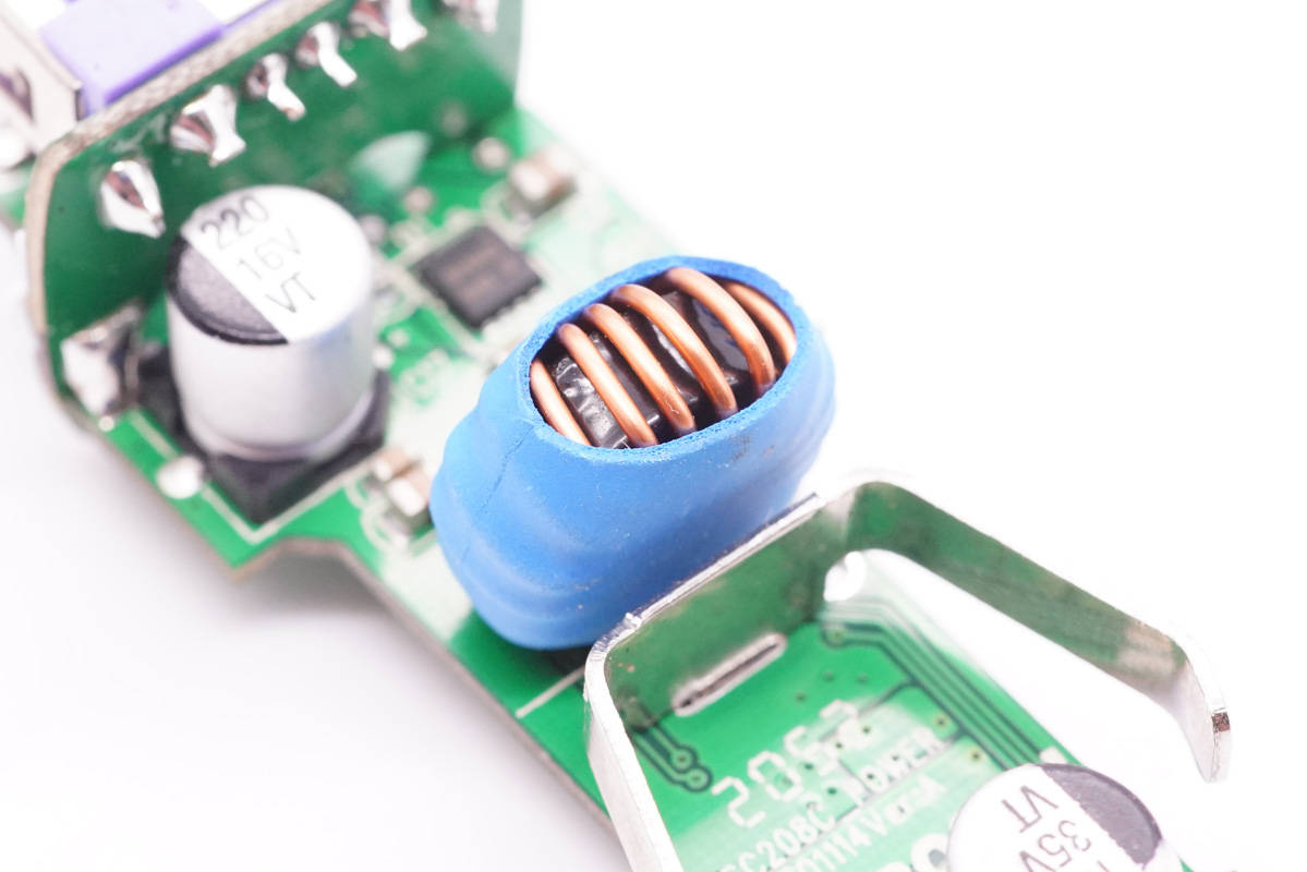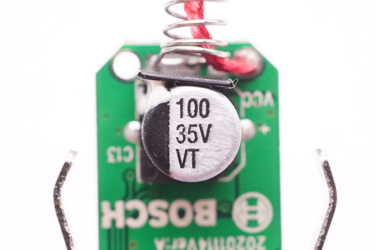 輸入濾波固態電容規格為35V 100μF,和彈簧間有塑料板進行隔離。