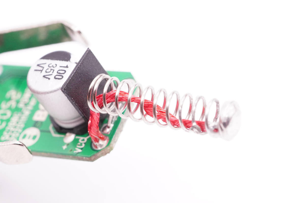 輸入端彈簧上有一根紅色導線用來降低電阻。