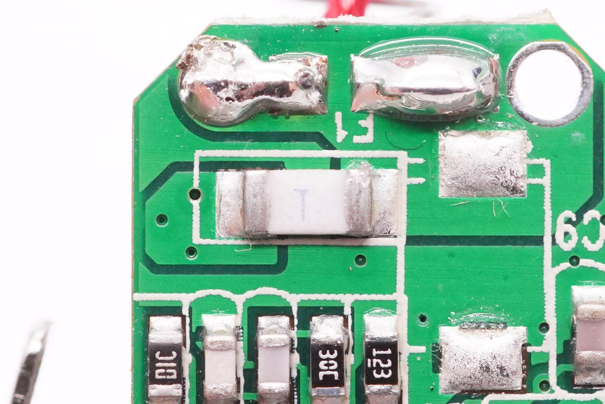 通過觀察發現這款車充采用一顆降壓協議芯片輔助輸入降壓以及雙口協議識別,控制1A1C接口輸出電壓。下面我們從輸入端開始了解各元器件的信息。