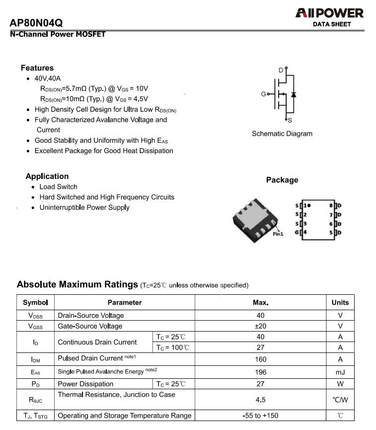 輸出VBUS開關管采用銓力AP80N04Q,NMOS管,耐壓40V。