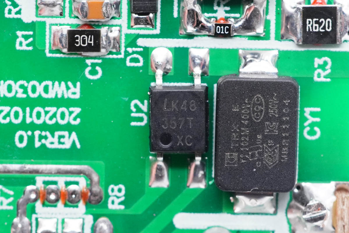 通過觀察發現,這款充電器采用開關電源寬范圍輸出,協議芯片通過光耦控制輸出電壓的經典架構。下面我們就從輸入端開始一一了解各元器件。