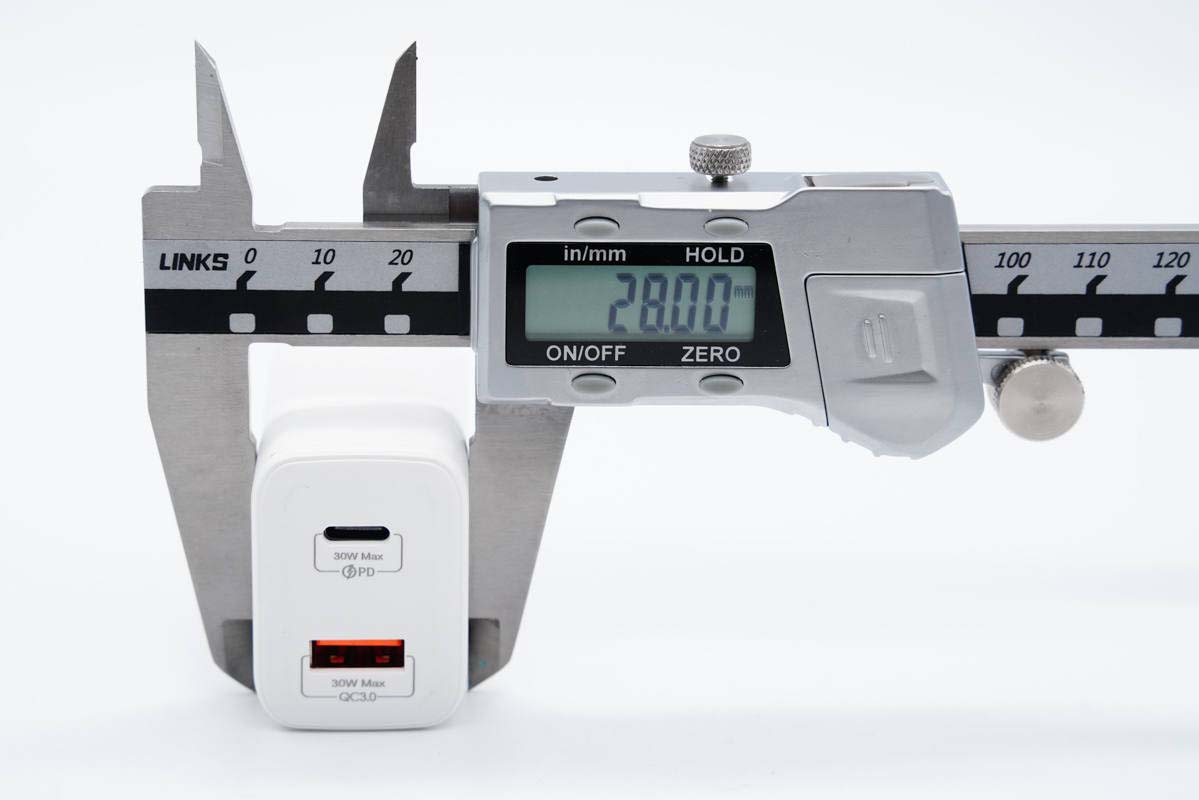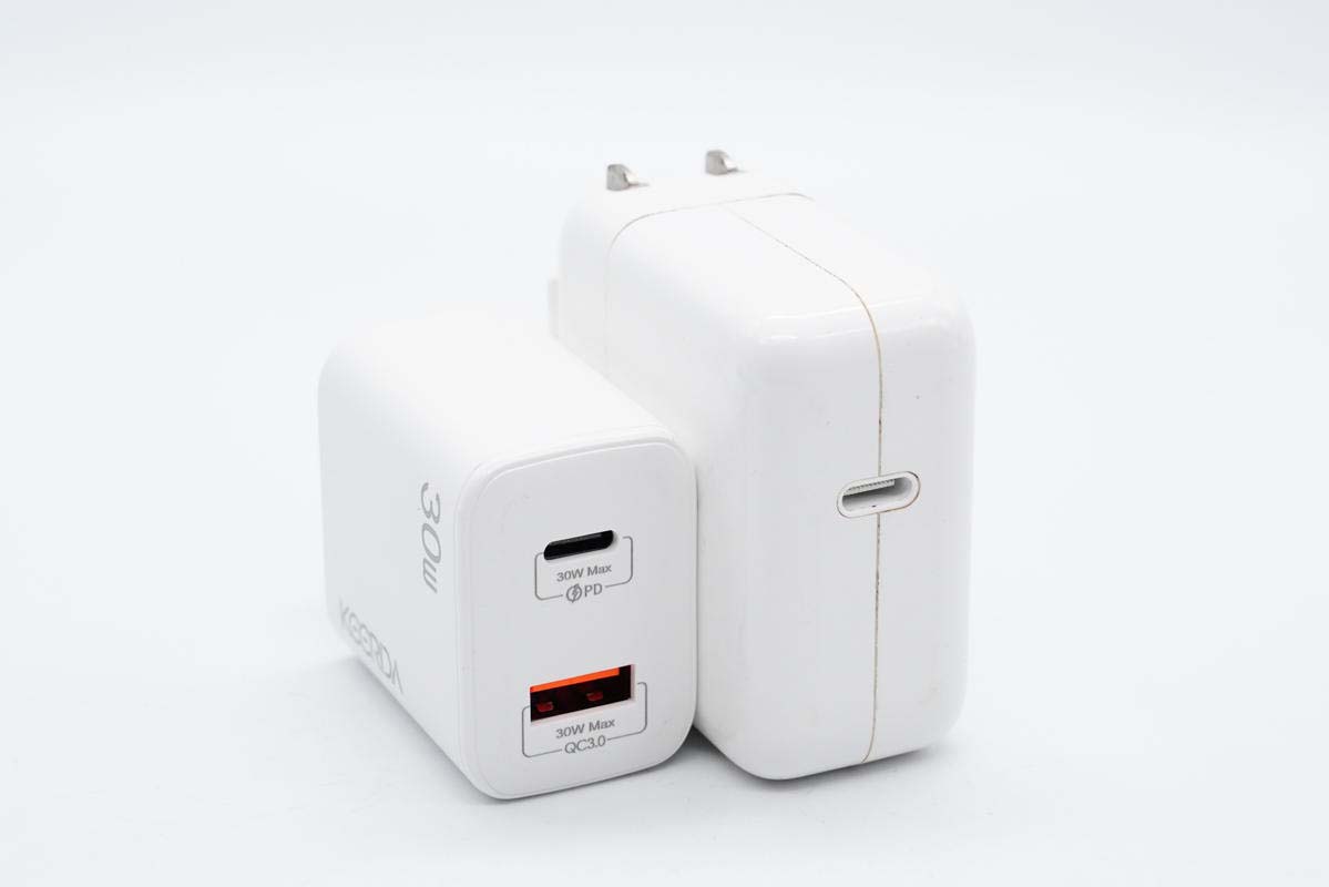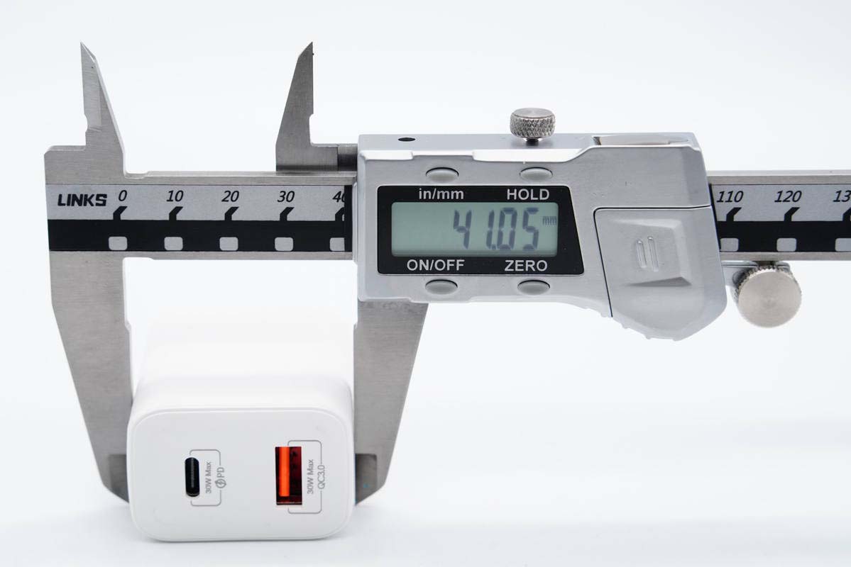 和蘋果30W充電器直觀對比,體積優勢非常明顯。