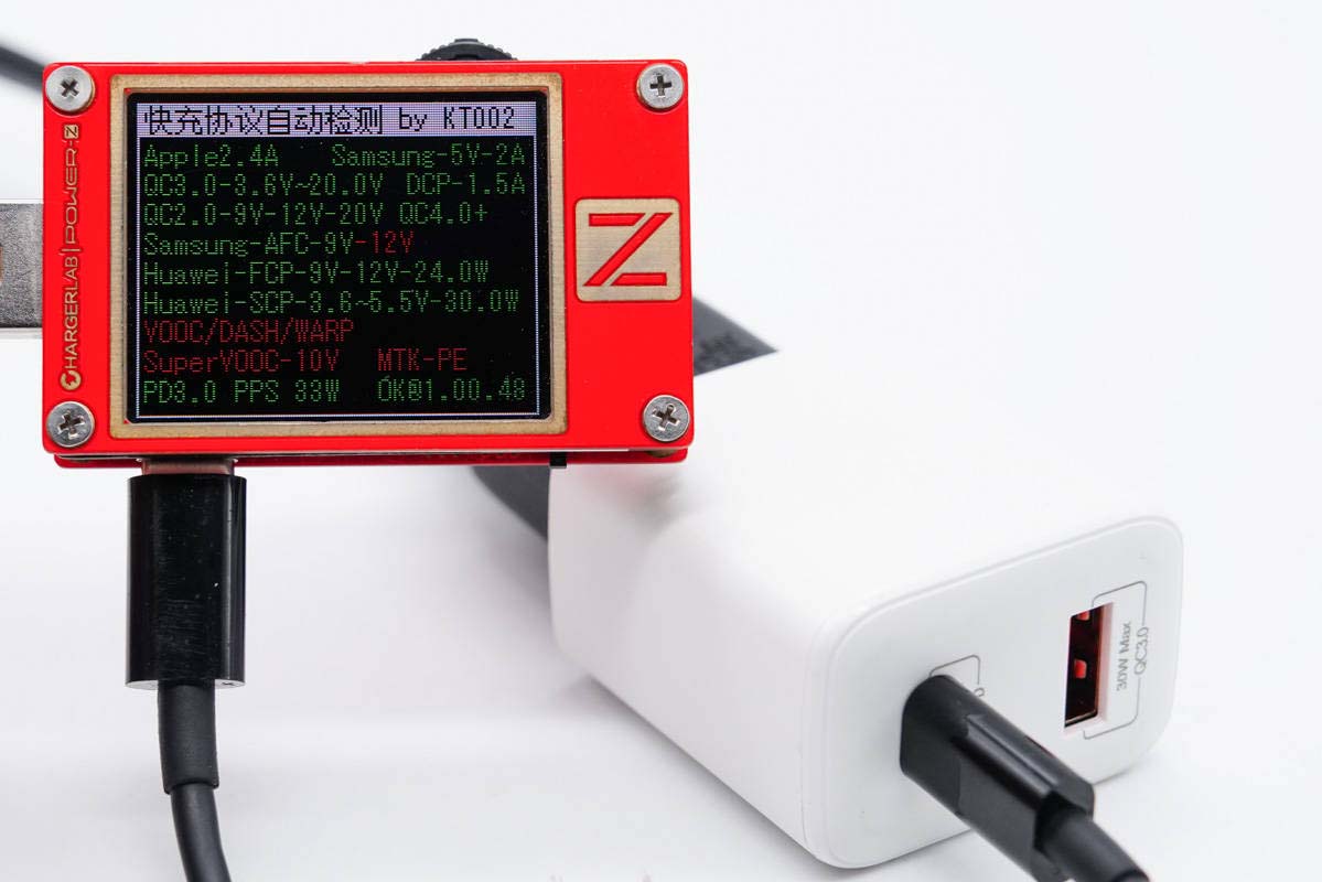 另外使用KT002測得USB-C口支持Apple 2.4A、Samsung 5V2A、DCP協議,以及QC2.0/3.0、AFC、FCP、SCP、PD3.0、PPS快充協議。
