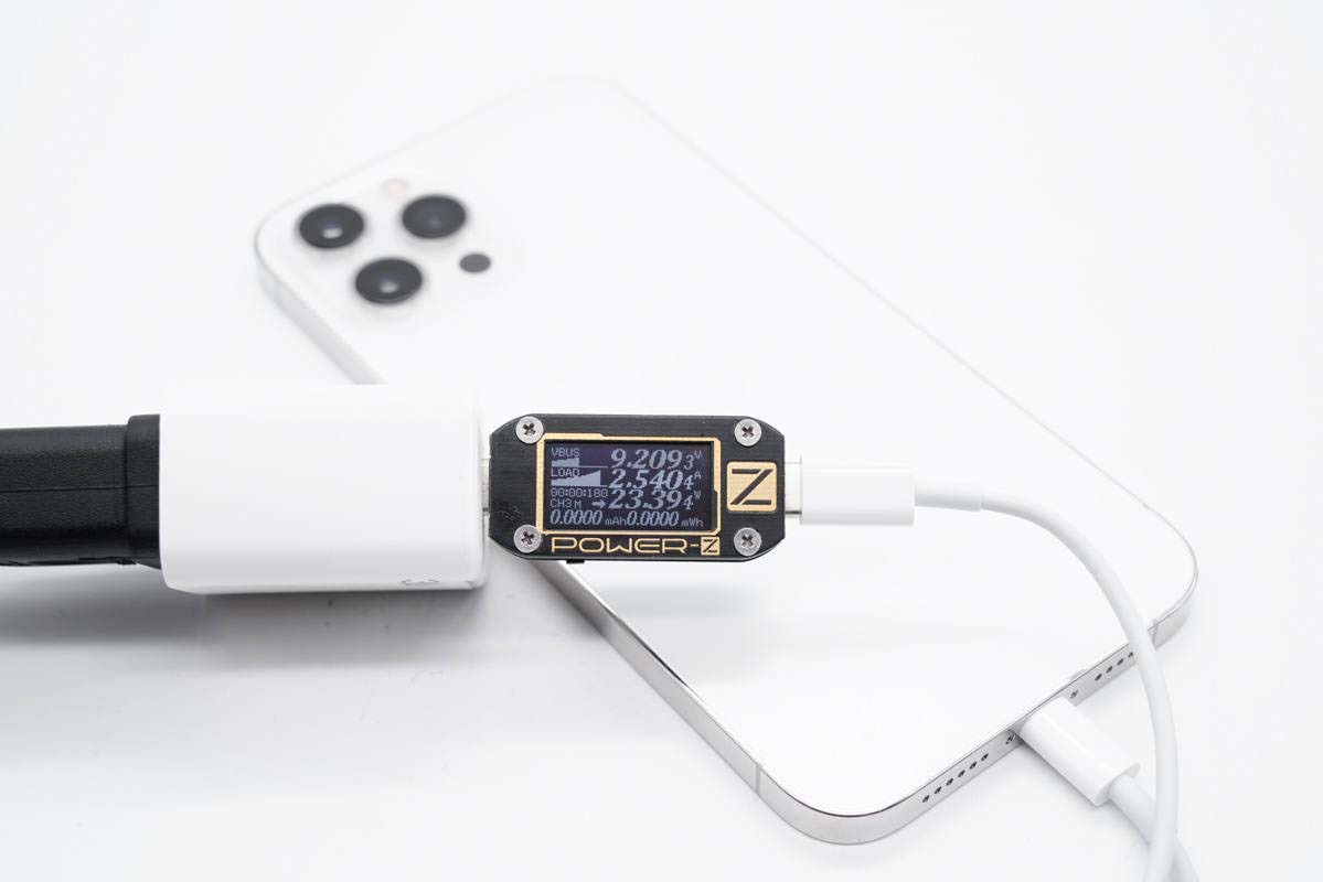 使用這款充電器給iPhone 12 Pro Max進行充電,實測充電功率為9.2V 2.5A 23.39W。