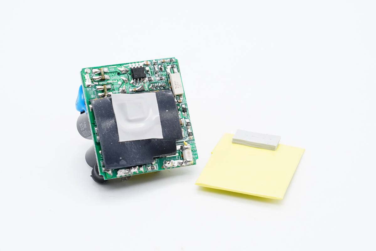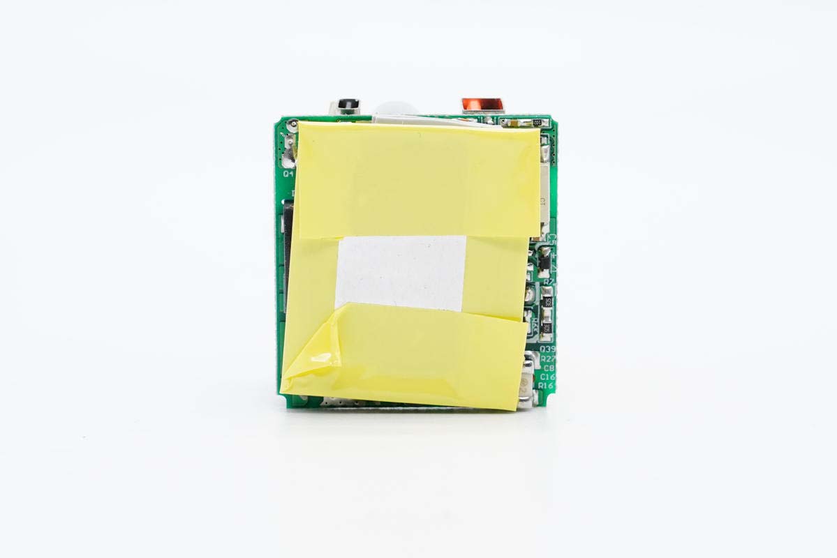 PCB板背面配有散熱片,并粘貼絕緣膠帶進行絕緣。