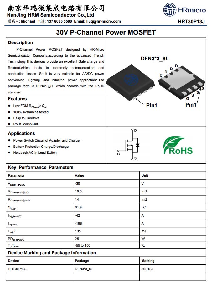 華瑞微HRT30P13J資料信息。