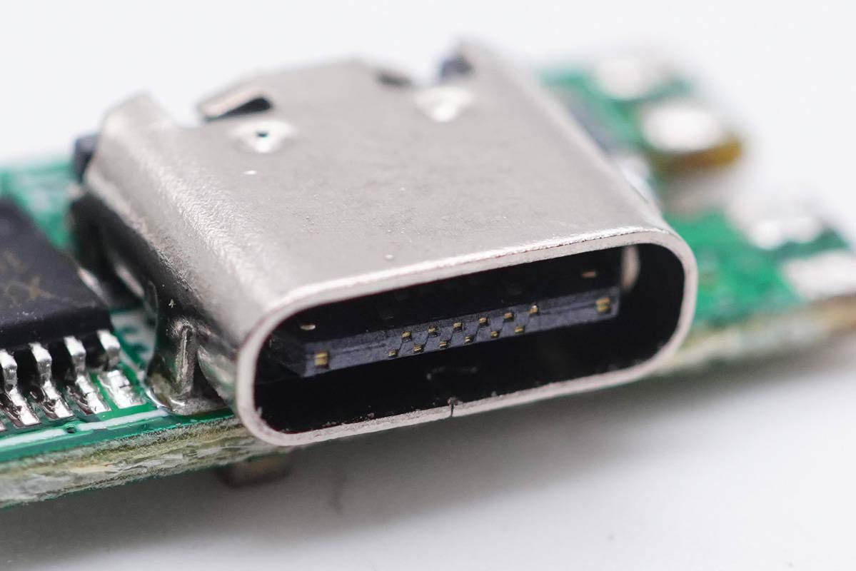 輸出端一覽,USB-C母座使用協議小板垂直焊接。