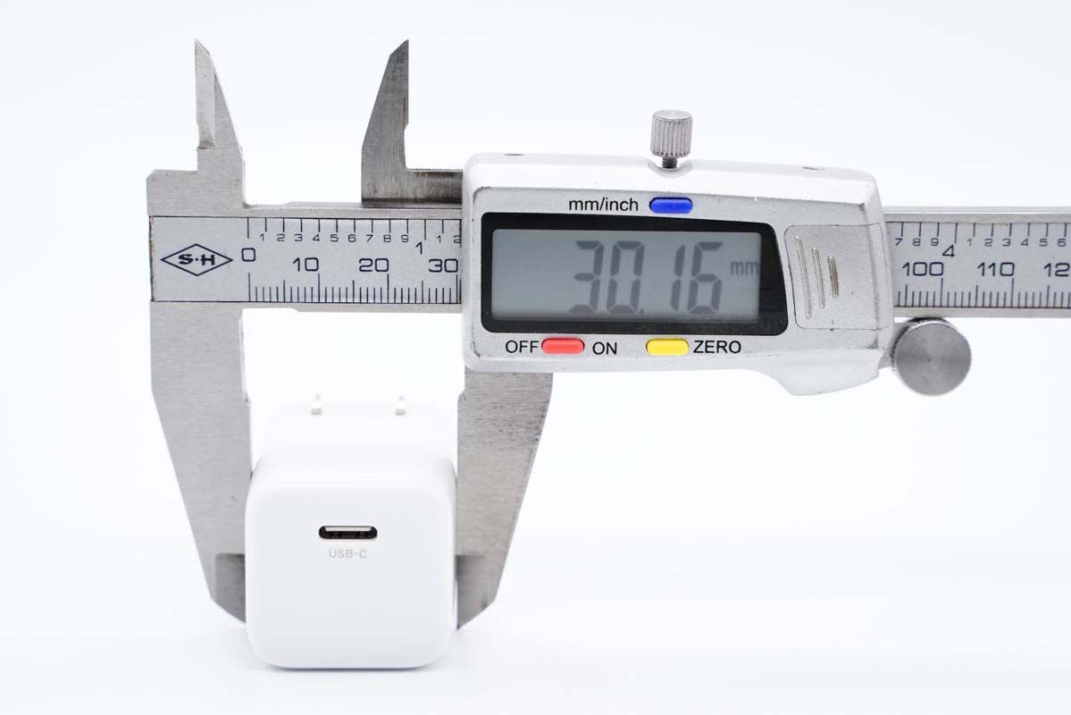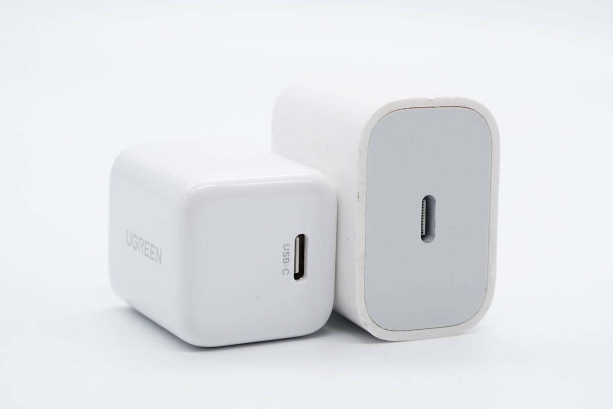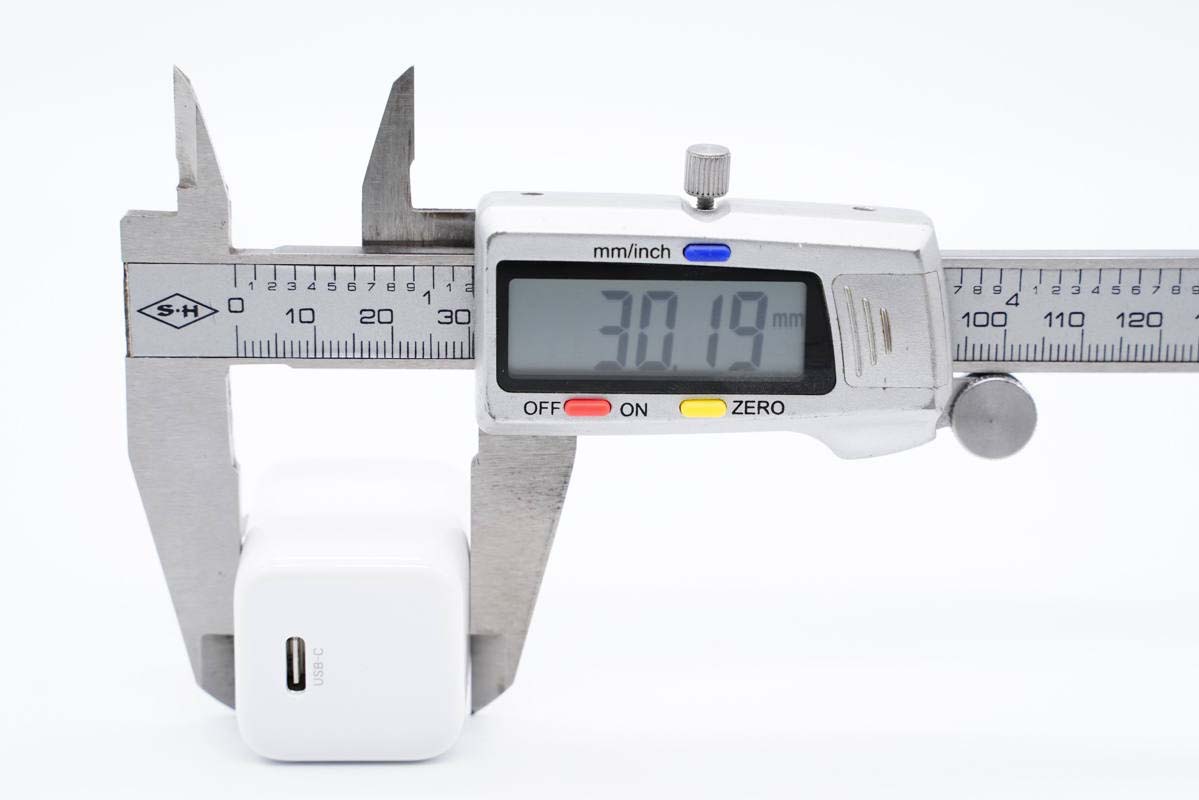 和蘋果20W充電器直觀對比,體積優勢明顯。
