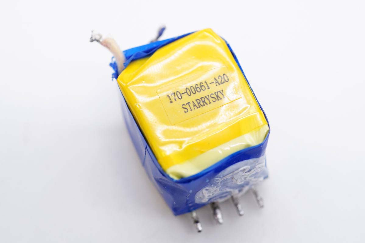 變壓器采用藍黑絕緣膠帶包裹,側面貼有信息標簽。