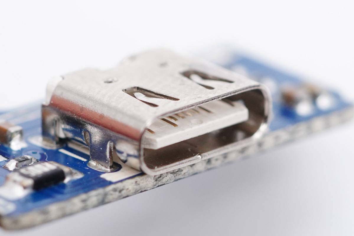 USB-C母座特寫,過孔焊接。