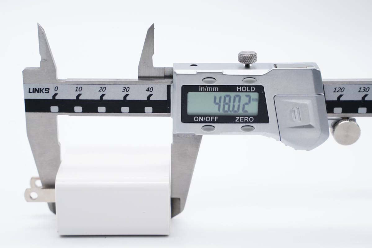 使用游標(biāo)卡尺實(shí)測(cè)充電器機(jī)身長48.02mm。