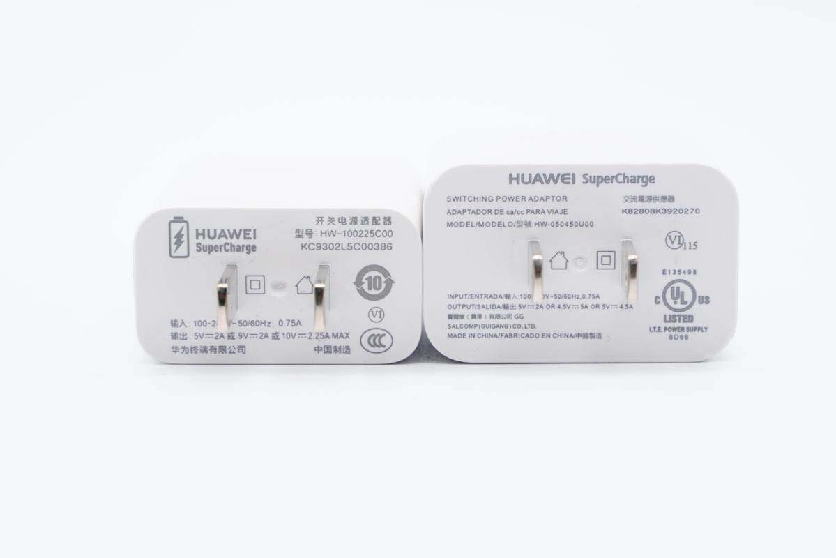 和華為新款10V2.25A 22.5W快充充電器相比,雖然外觀ID一樣,但機(jī)身更短也更寬一些。