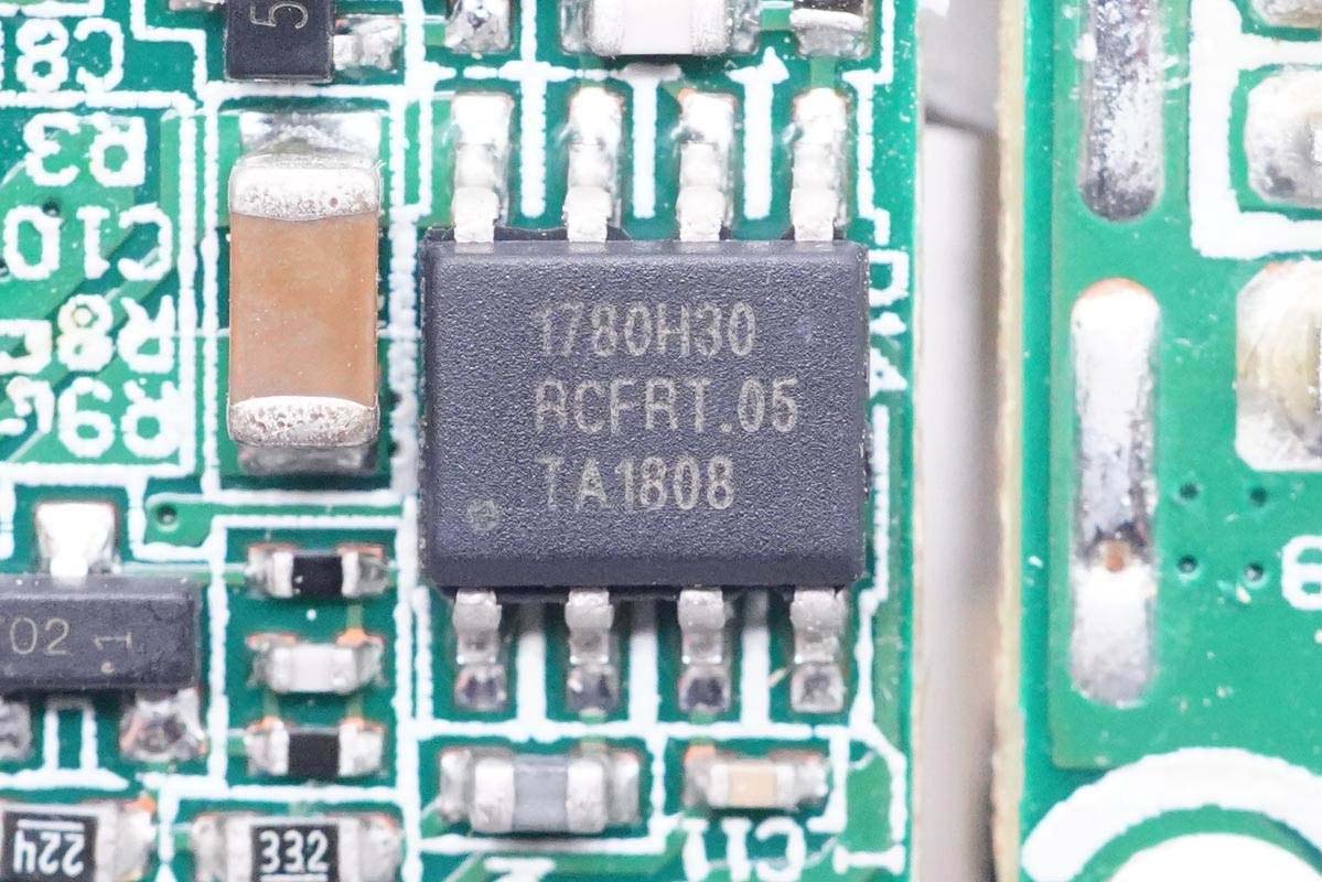 PWM主控芯片特寫,Dialog IW1780H,數(shù)字準(zhǔn)諧振反激PWM控制器。