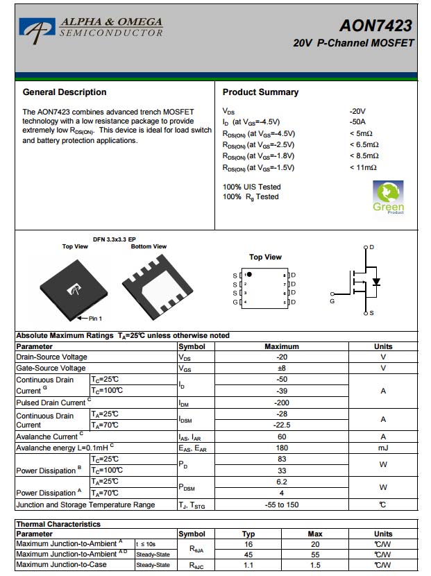 AOS AON7423資料信息。