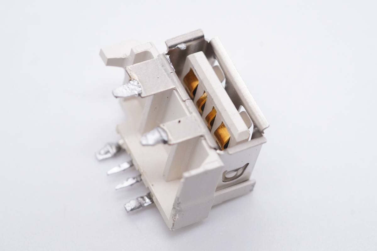 USB-A母座特寫,正負(fù)極加寬用于大電流快充。