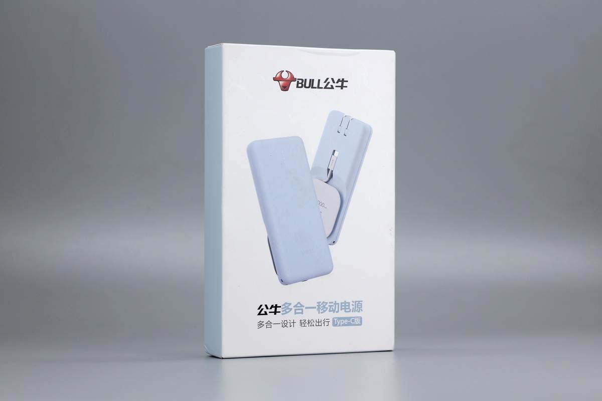公牛這款多合一移動電源采用慕雪灰配色,機身表面曬紋處理,邊角過渡圓潤,整體風格簡約。