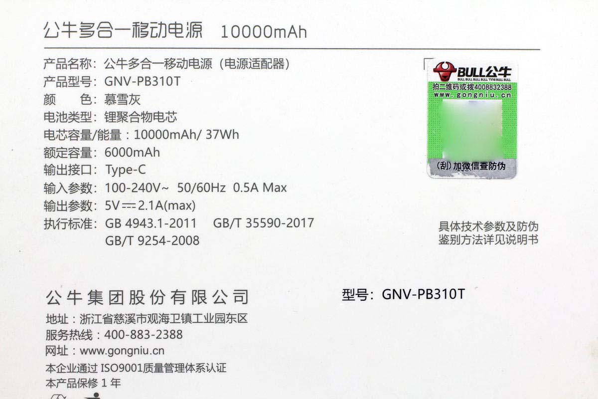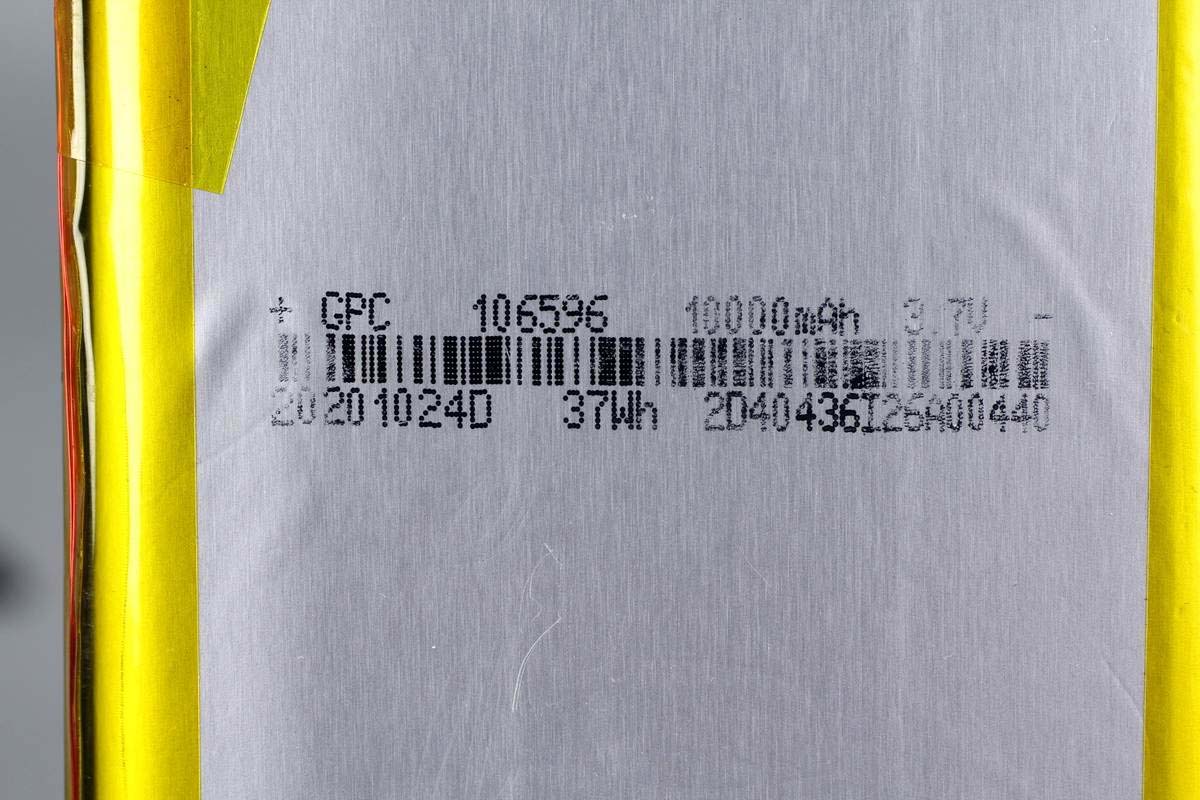 電芯來自GCP,規格為10000mAh/3.7V/37Wh,2020年10月24日生產。