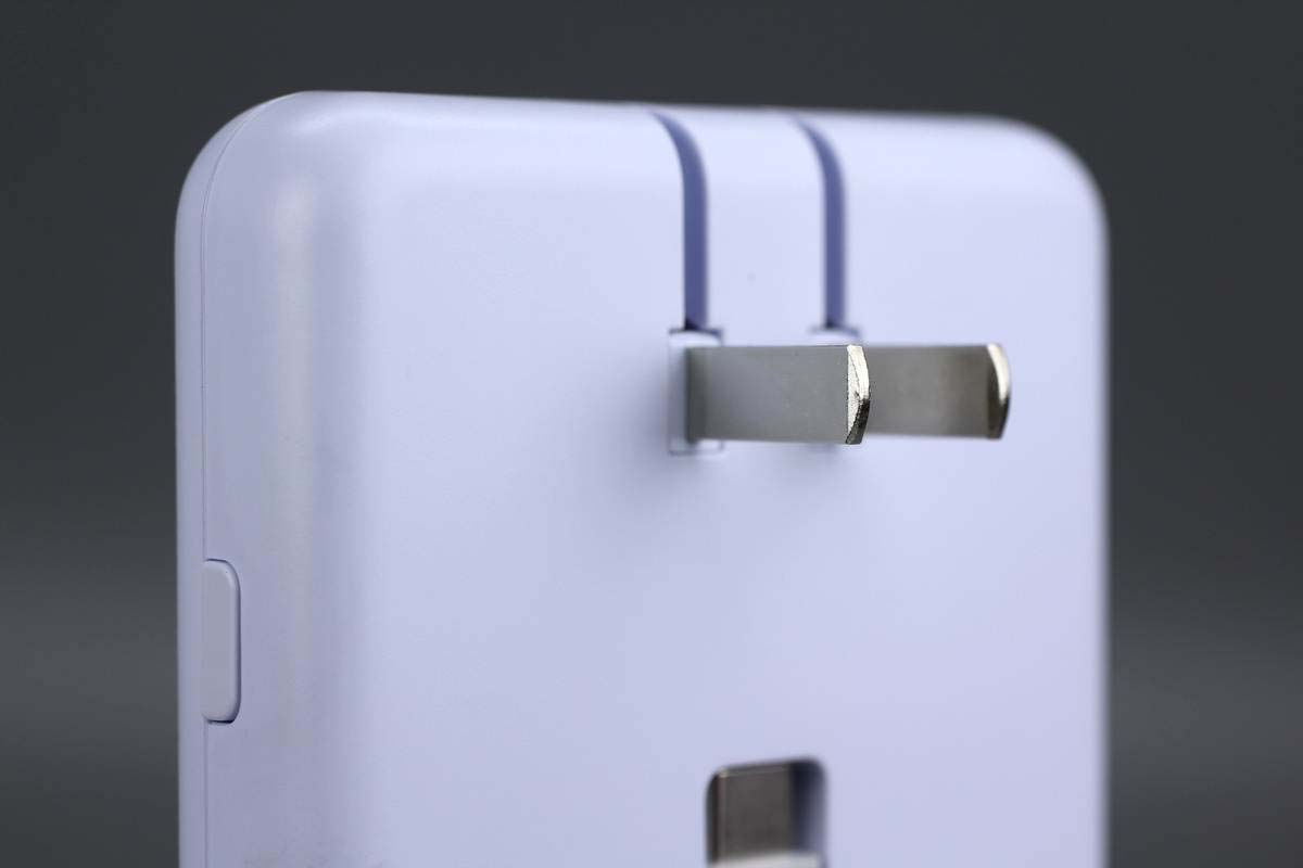頭部設有可折疊國標插腳,攜帶方便且不會刮傷包里其它設備。