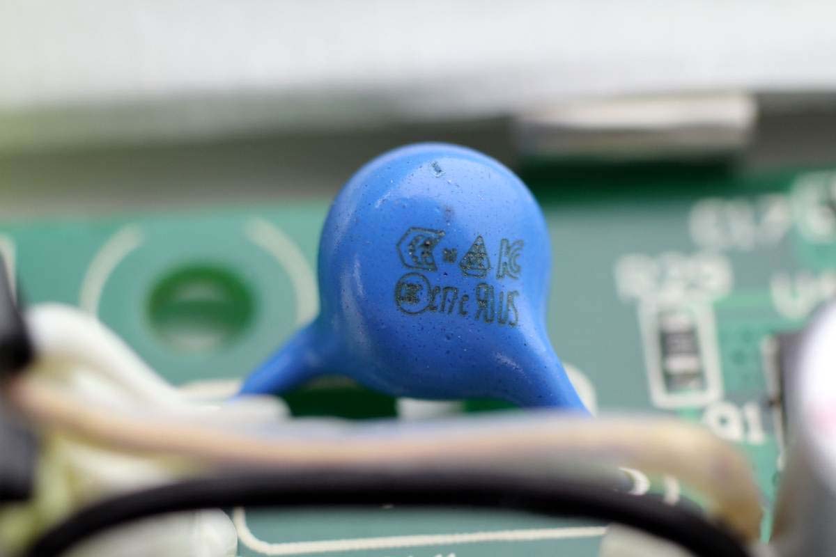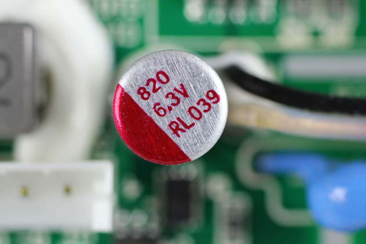輸出濾波固態電容特寫,規格為6.3V 820μF。