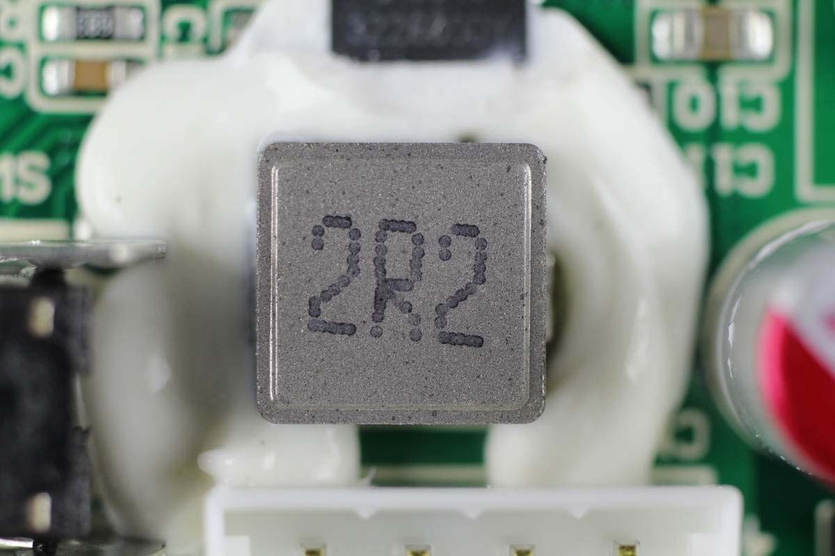 2R2電感特寫,打膠固定,配合英集芯IP5310升降壓實現電芯充放電。
