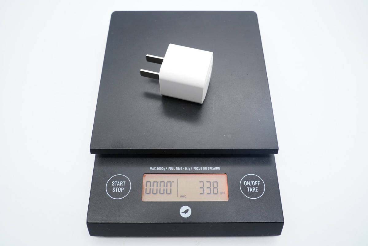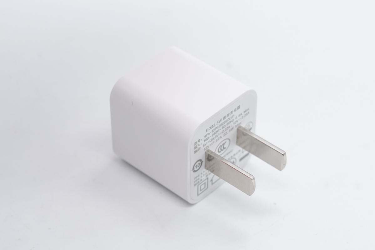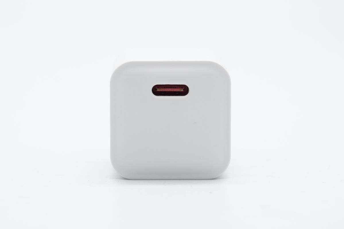 這款充電器非常小巧,造型為常見的小方塊設(shè)計。外殼采用白色PC材質(zhì),表面啞光,輸出頂面微凸,整體十分簡潔。