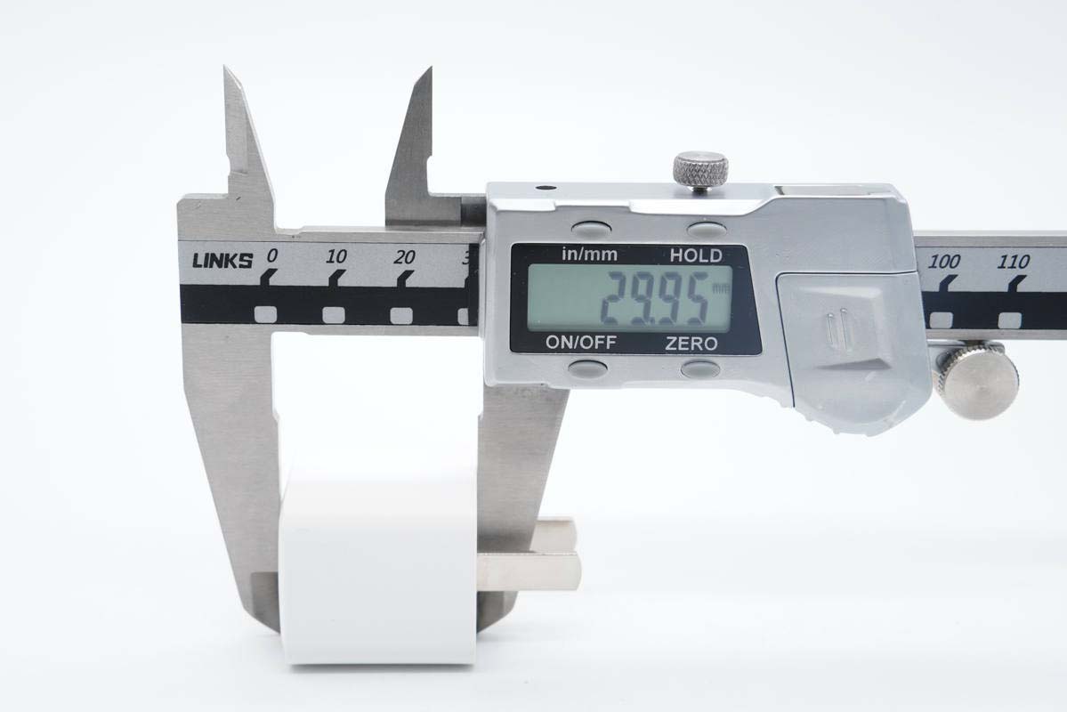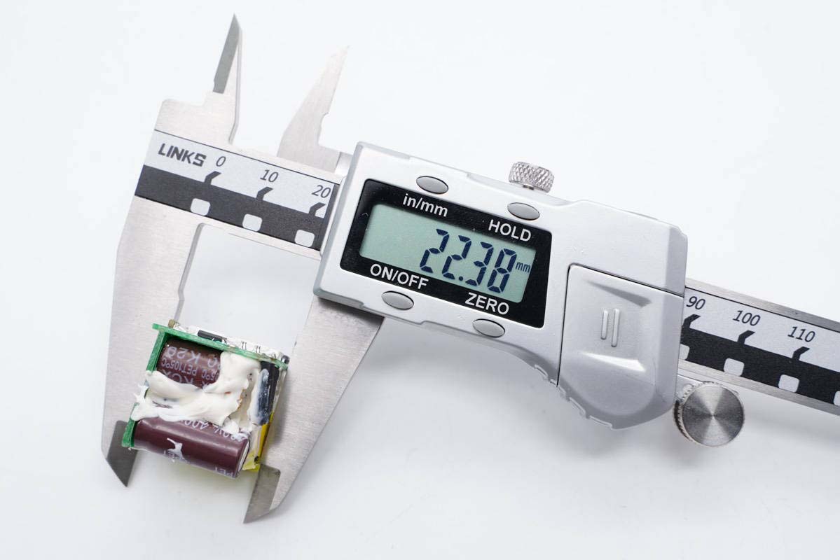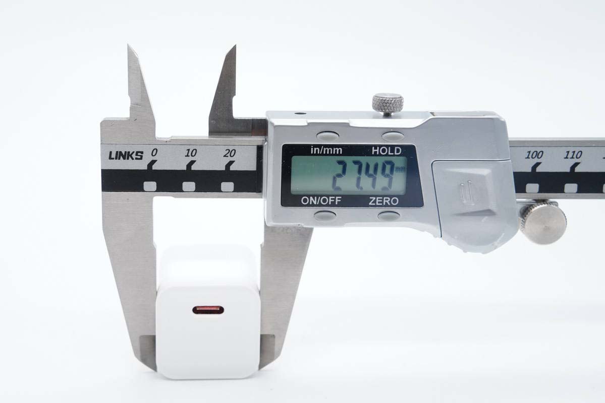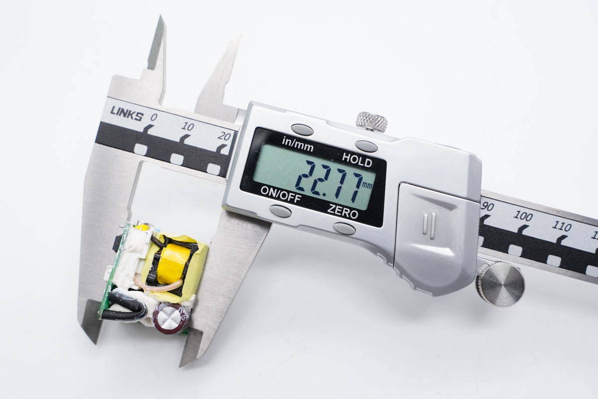 使用游標卡尺實測充電器機身高度為29.95mm。