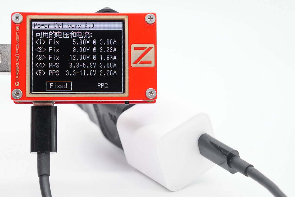 使用ChargerLAB POWER-Z KT002測得USB-C口支持Apple 2.4A、Samsung 5V2A、DCP協(xié)議,以及QC2.0/3.0、AFC、SCP、PE2.0、PD3.0和PPS快充協(xié)議。