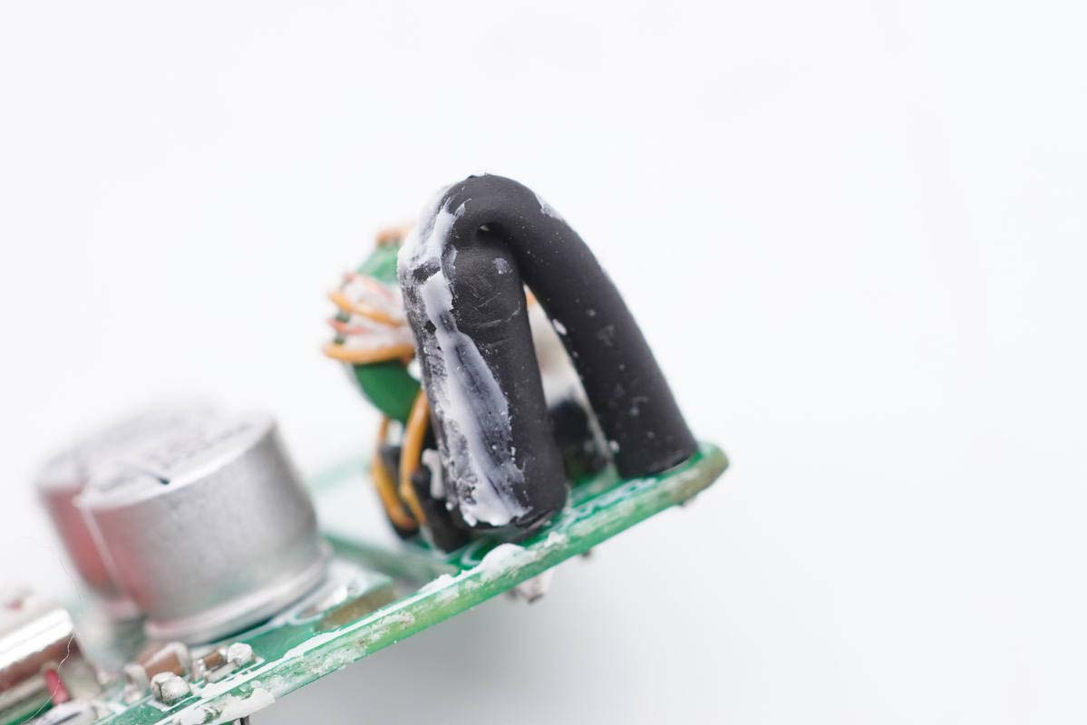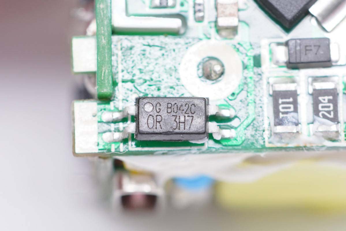 初級小板的背面還有主控芯片、高壓開關(guān)管以及光耦。
