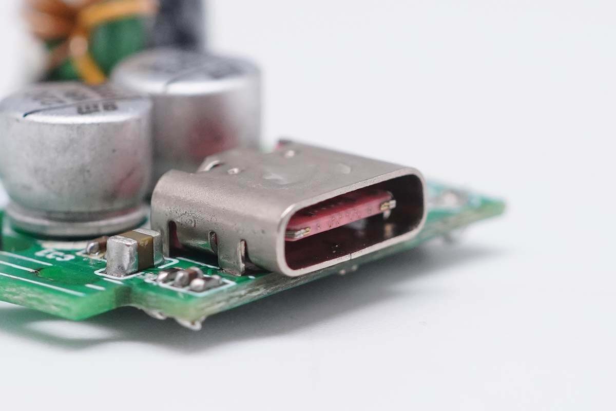 USB-C母座過孔焊接,橙色膠芯不露銅,夾鋼片更加耐用。