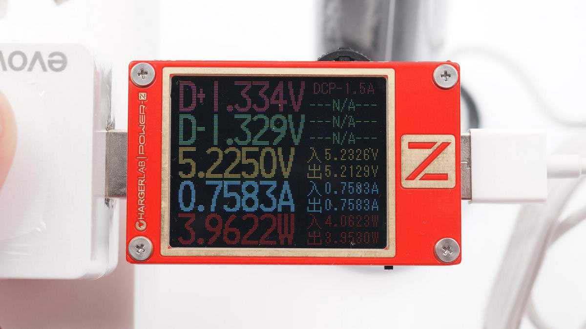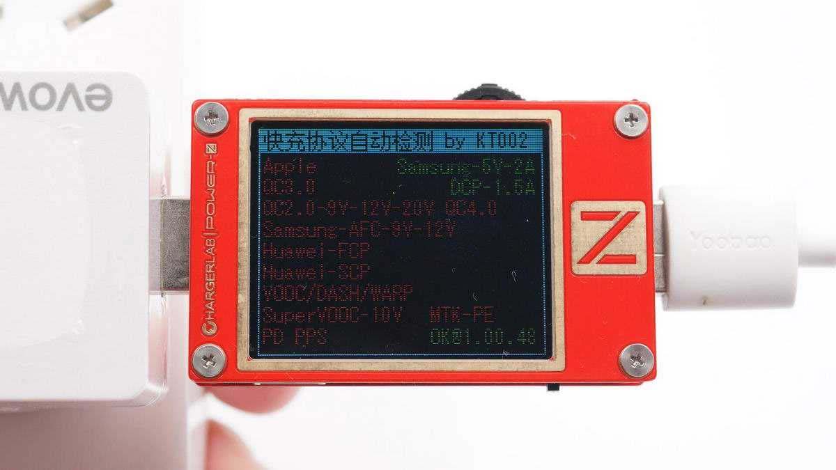 使用ChargerLAB POWER-Z KT002測(cè)得USB-A口支持Samsung 5V2A和DCP協(xié)議。