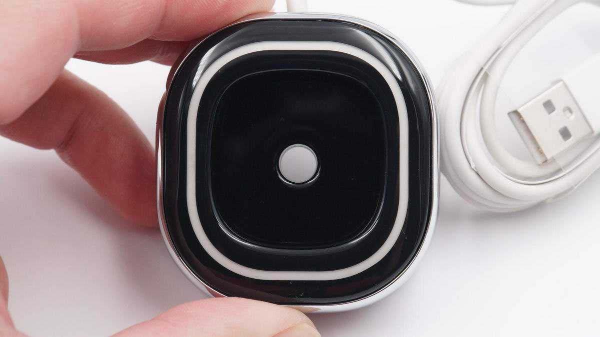 機(jī)身頂部白色環(huán)帶是指示燈,插槽中心鏤空有一個(gè)圓孔,作用是排水。