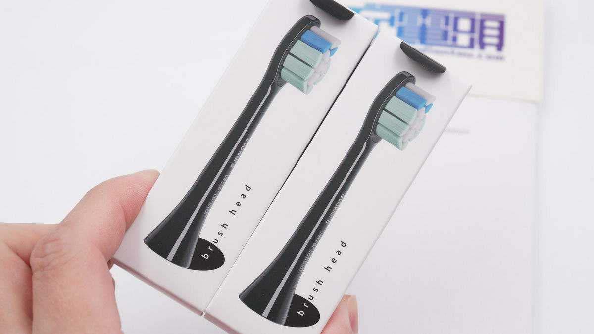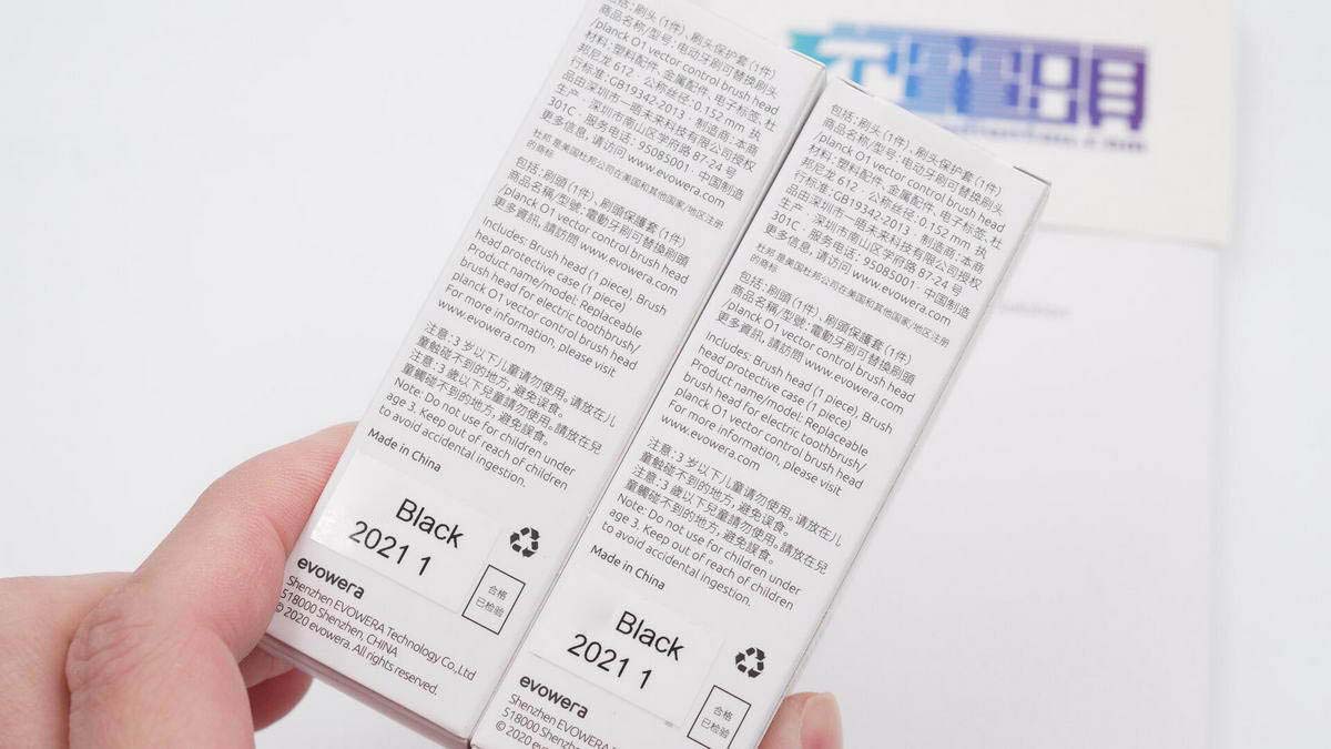 牙刷頭兩只裝,小盒子正面印有對(duì)應(yīng)的外觀圖。