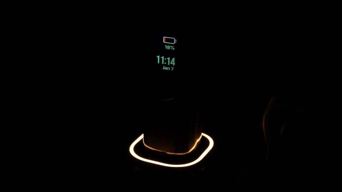 夜間場(chǎng)景下,無線充底座燈帶亮淡黃色氛圍光,氛圍燈是可以通過牙刷用手機(jī)APP進(jìn)行控制,作為小夜燈使用,充電時(shí)候牙刷手柄的顯示屏顯示日期和電量情況。