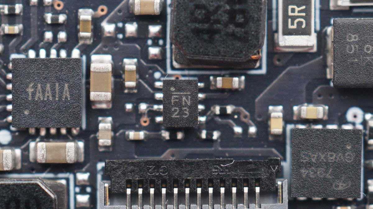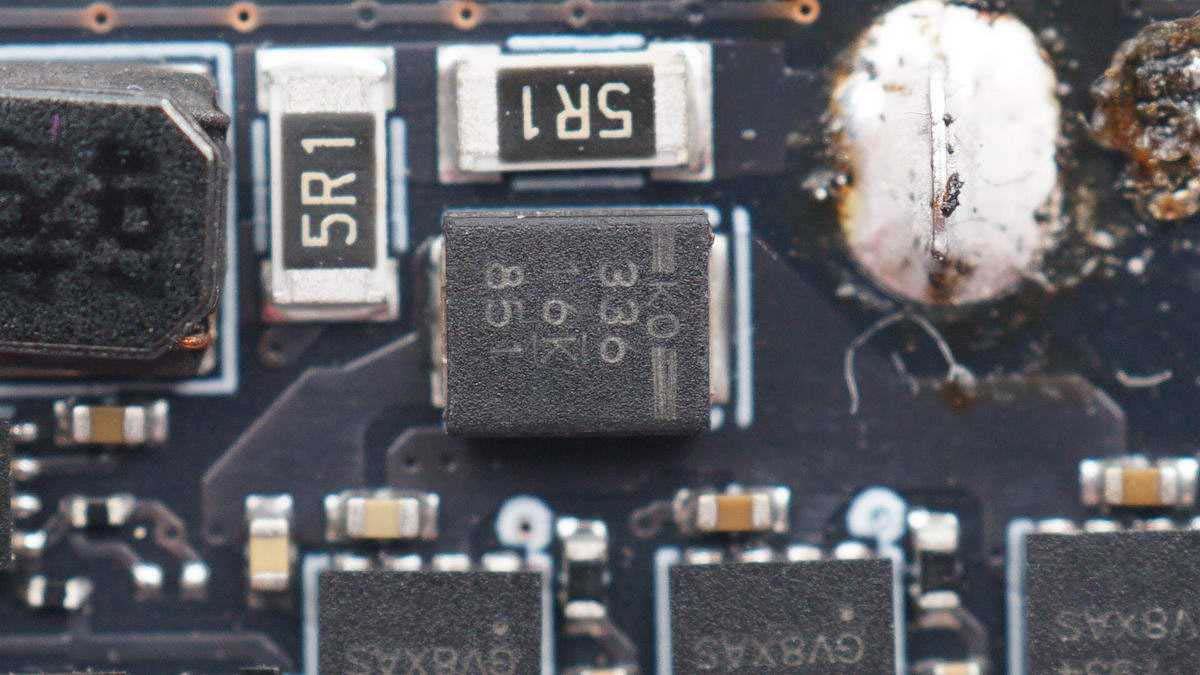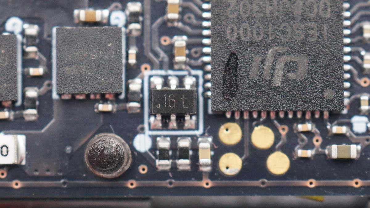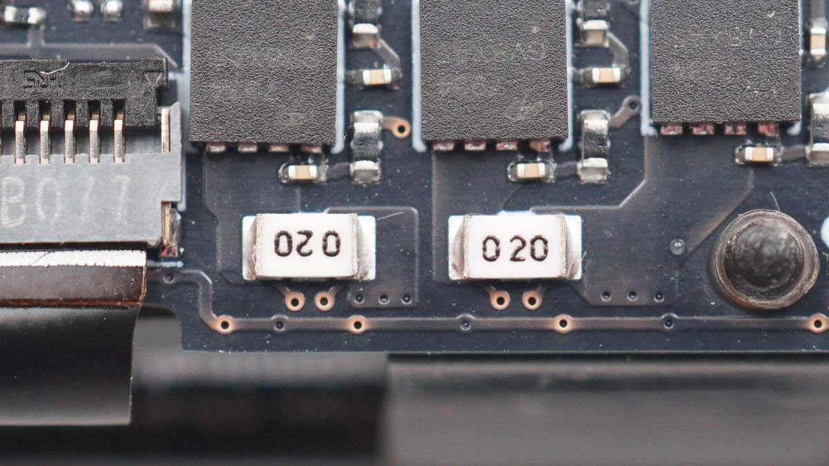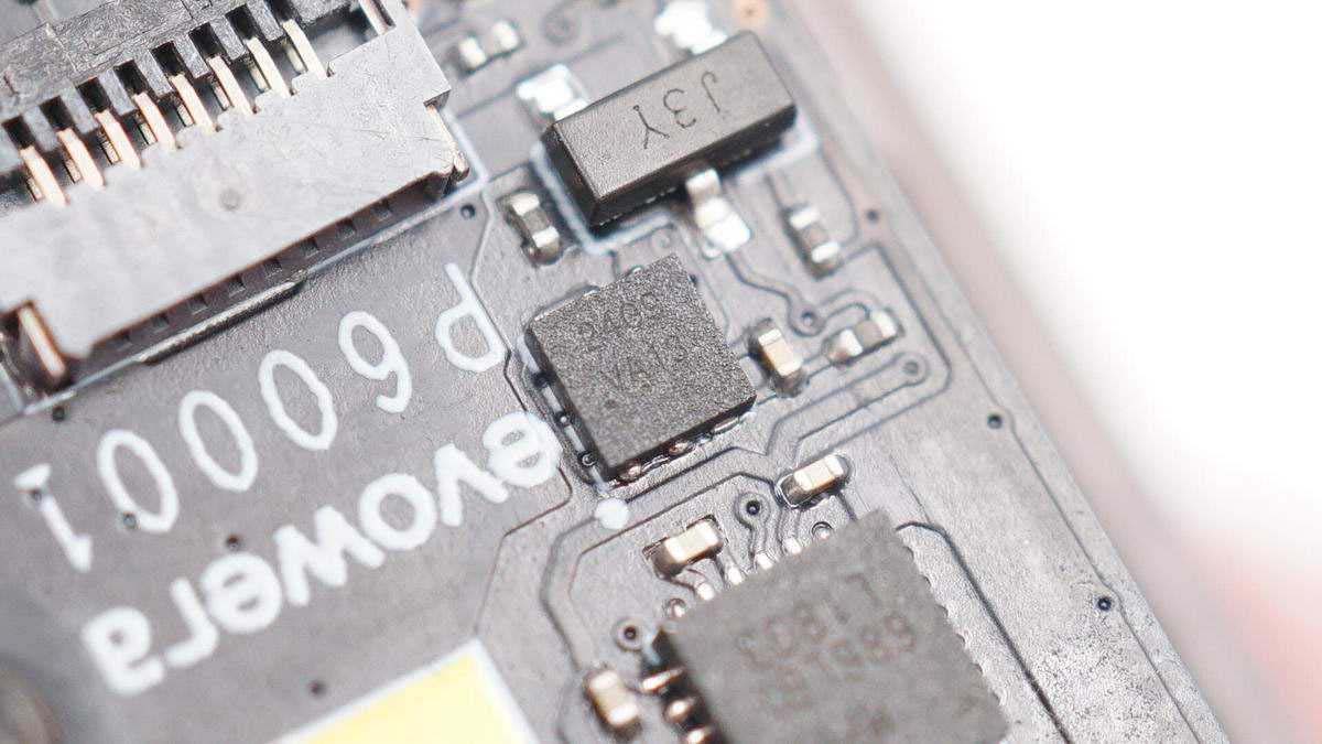 將防水膠清理掉,可以看到有存儲(chǔ)芯片、無線充主控芯片、兩顆MOS管以及諧振電容,電容打膠固定。板子另一面有無線充電線圈,不過為了極致防水,內(nèi)部使用硬封膠填充成一個(gè)整體,板子沒法拆下來。