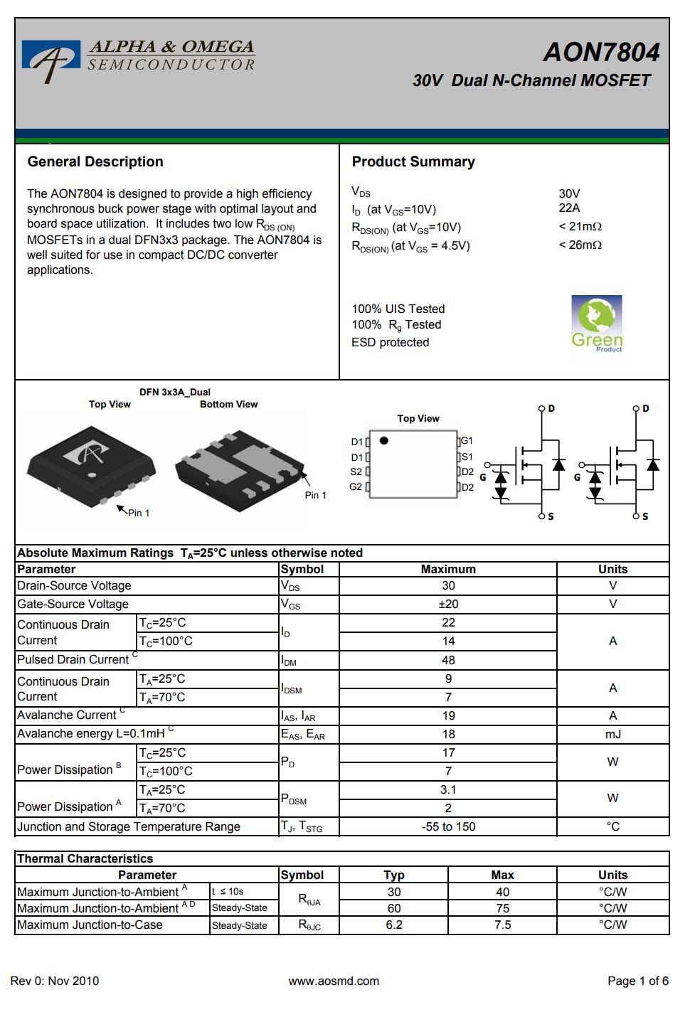 AOSMD AON7804 詳細(xì)資料。