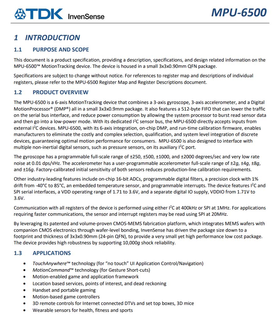TDK MPU6500 介紹。