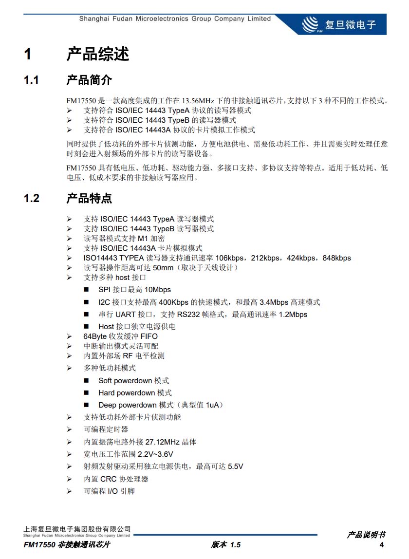 復(fù)旦微 FM17550 芯片綜述。