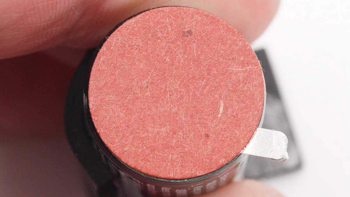 電池正極貼有紅色絕緣紙。