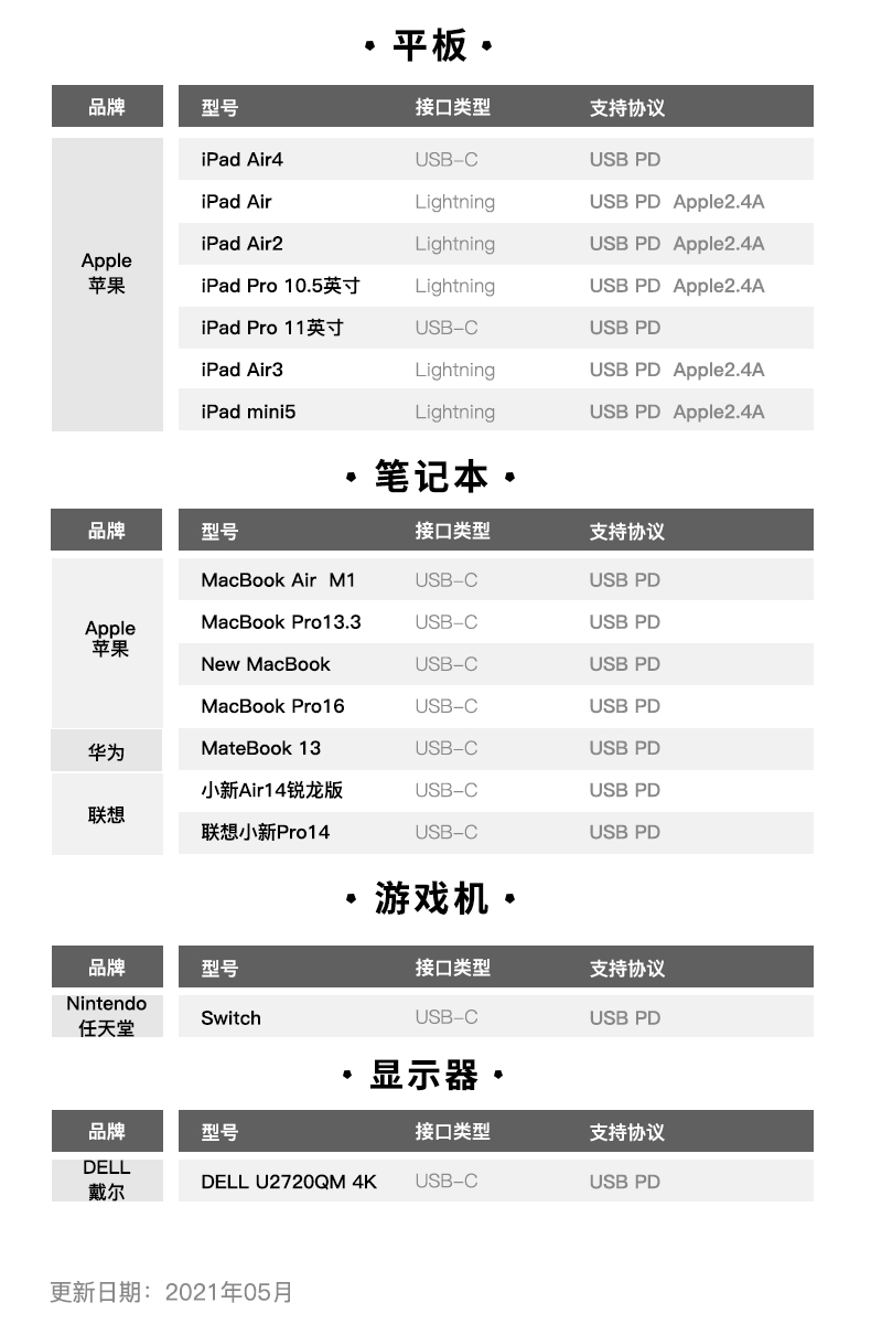 此外還包括 7 臺 iPad、7 臺筆記本電腦、Switch 游戲機以及 Dell 4K 顯示器。iPad 和筆電全部采用 Lightning或USB-C接口并支持 USB PD 快速充電。