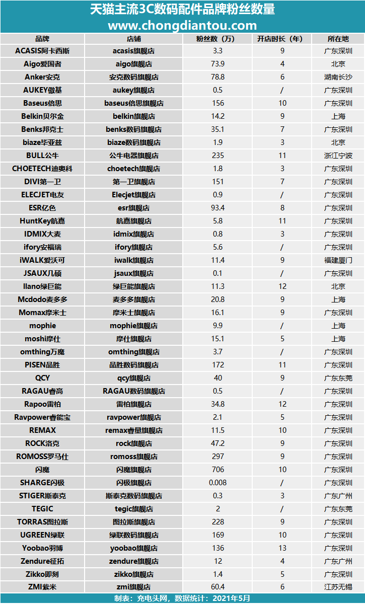 品牌無窮無盡,3C數(shù)碼配件品牌數(shù)量也很多,筆者在天貓3C數(shù)碼領(lǐng)域一通好找,再采訪了同事以及身邊的朋友,總算“積累”了42大品牌。