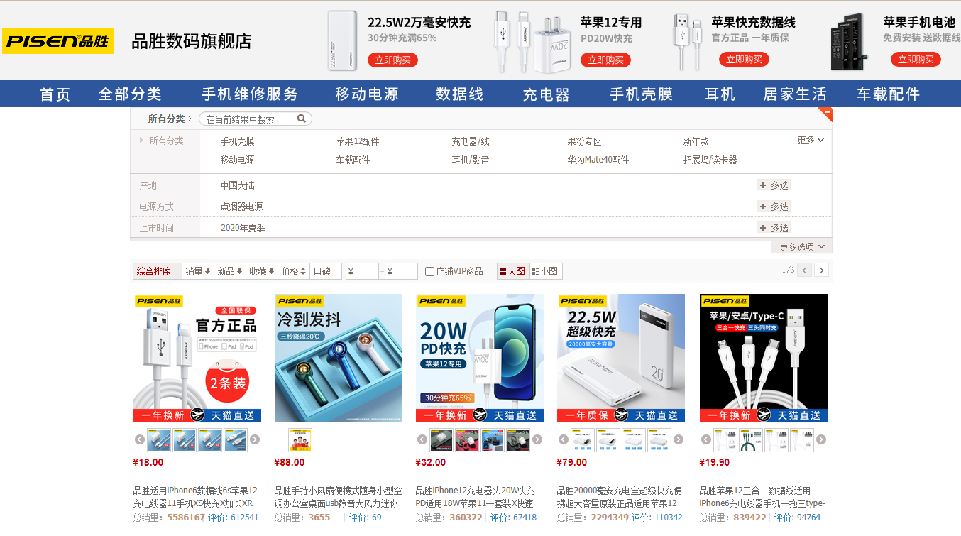 可以看到店鋪的熱銷產(chǎn)品以移動電源和線材為主,價位相對均衡,性價比較高。羅馬仕的充電器也不錯,我們曾拆解過