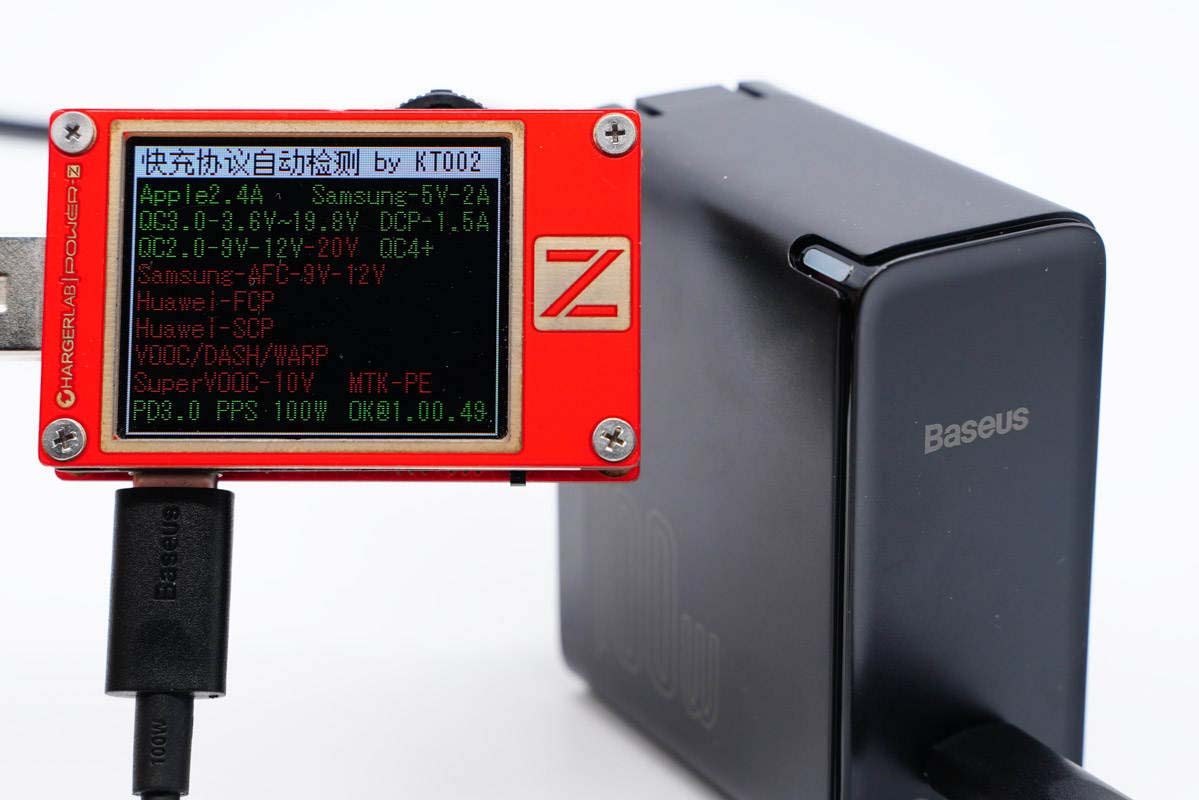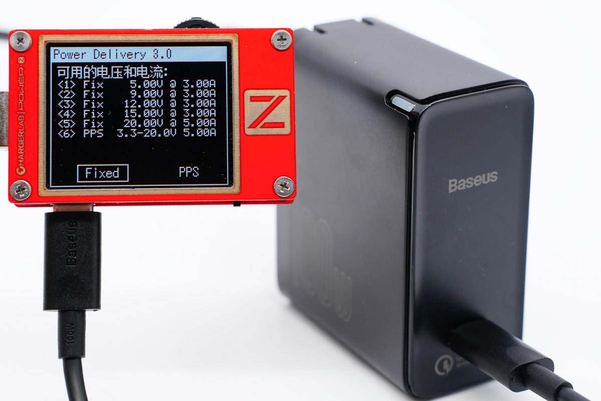 使用ChargerLAB POWER-Z KT002檢測(cè)USB-C口的輸出協(xié)議,顯示支持Apple 2.4A、Samsung 5V2A、DCP協(xié)議,以及QC2.0/3.0、PD3.0、PPS快充協(xié)議。