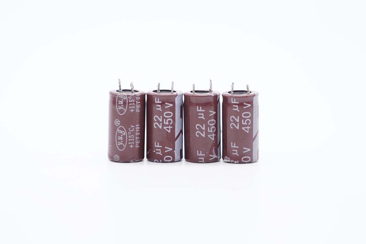 四顆高壓濾波電解電容采用深圳市昱光電子y.u.g品牌,規(guī)格都是450V 22μF。